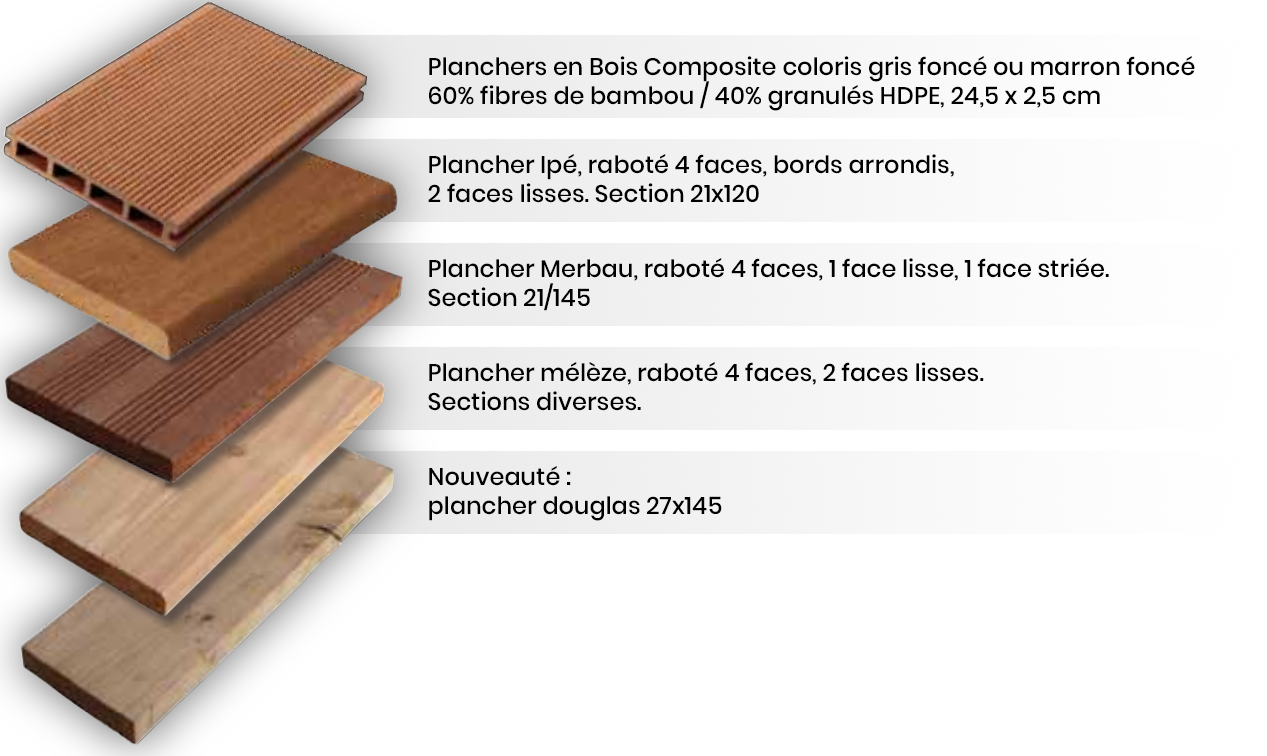 Nous vous proposons une large gamme de bois pour tous vos projets. Vous pouvez choisir :